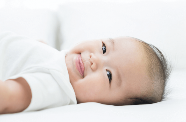 Now the much-awaited big smilestone is upon us! At 2–3 months old, your little man’s personality will start to shine through, he is now ready to connect and be part of the fun! As his smile trial runs come to an end, you will start seeing more of his social smiles. He smiles whenever you both lock eyes or when you make silly sounds; he will respond with a sweet smile when he recognises someone special like his mummy or daddy in the room! If crying is a baby’s instinctive way to communicate, he will now learn that he can also get your attention by smiling.