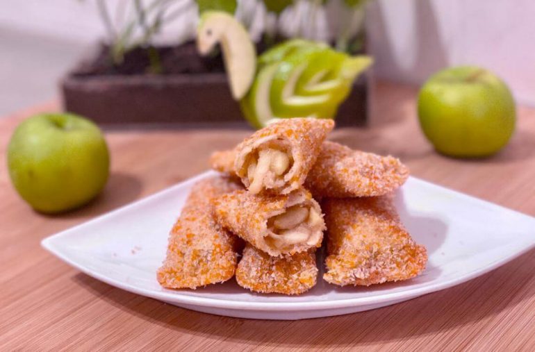 - Fry apple bread pie until golden.