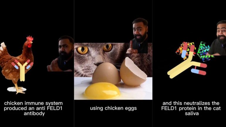 This antibody then neutralises the protein that’s present in the cat’s saliva and fur.