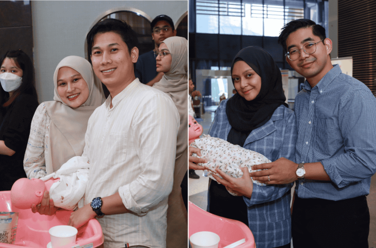 This practical module was one of the highlights of the day, as couples got to practise real-life baby bathing and swaddling techniques on lifelike dolls.