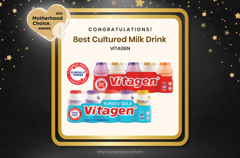 One cultured milk brand that our Malaysian mums simply love is VITAGEN which was voted Best Cultured Milk Drink in the Motherhood Choice Awards 2022.