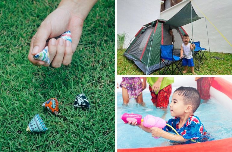 Turn your yard into a camping place for your kids. Just set up a tent in the middle of your garden, add an inflatable pool, prepare some games like congkak, batu seremban, or any sensory activities for kids, and bring some snacks as comfort food. Wallah, your campsite is now ready – just like how this famous mummy, @bettyrahmad did it!
