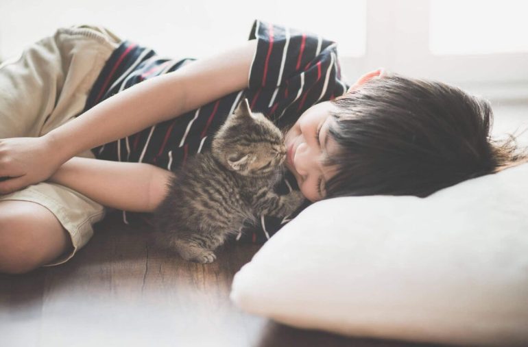 Kucing domestik dari mana-mana baka adalah sesuai untuk dijadikan haiwan peliharaan kanak-kanak. Bergantung kepada umur, si kecil boleh tolong memberikan makanan, minuman, dan bermain dengan kucingnya.