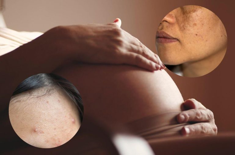 Jeragat dan tahi lalat akan jadi lebih gelap dan Mommy juga mungkin akan ada melasma, yang dipanggil sebagai “topeng kehamilan”.