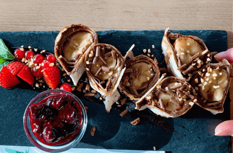 - Letakkan kulit tortilla di atas pinggan atau tempat yang bersih. Sapukan 2-3 sudu nutella pada kulit tortila (mengikut citarasa).