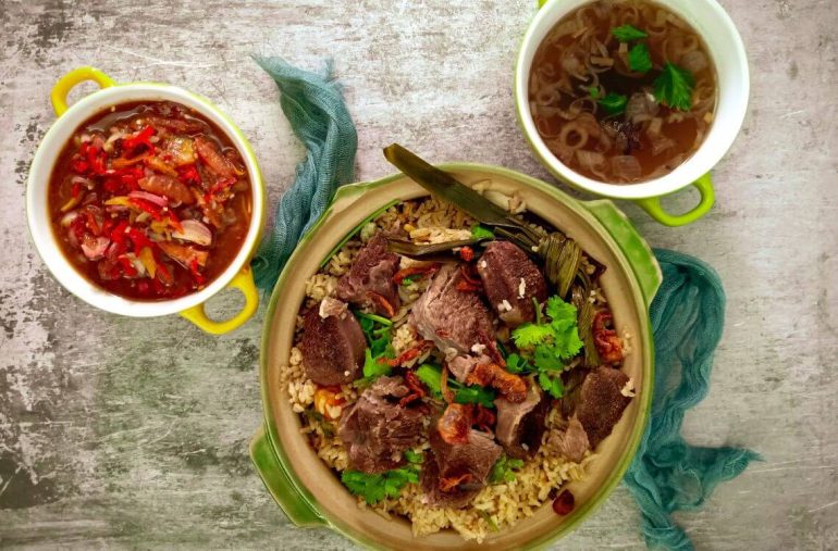 1. Nasi daging air asam yang lengkap, sedia dihidangkan!