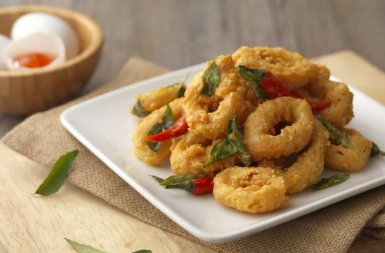 4. Kemudian, angkat sotong dan toskan minyaknya.